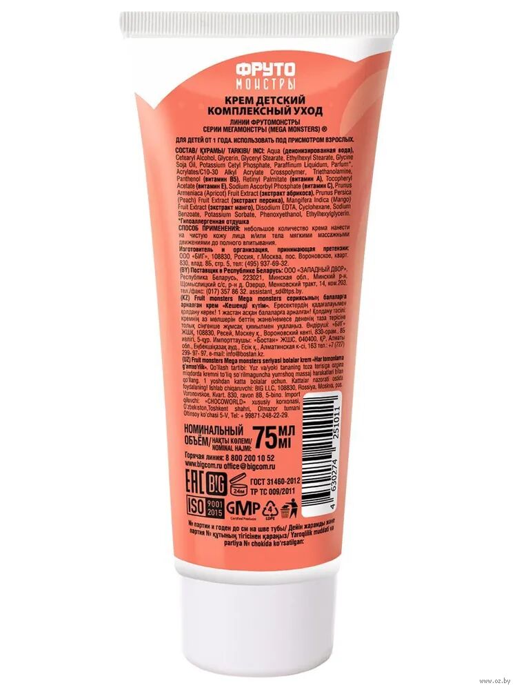 Нежный крем – это важный этап ухода за детской кожей. Крем Фрутомонстры с ароматом нежного персика обеспечит комплексный уход сразу после купания и в любое время дня – для рук, лица и всего тела.