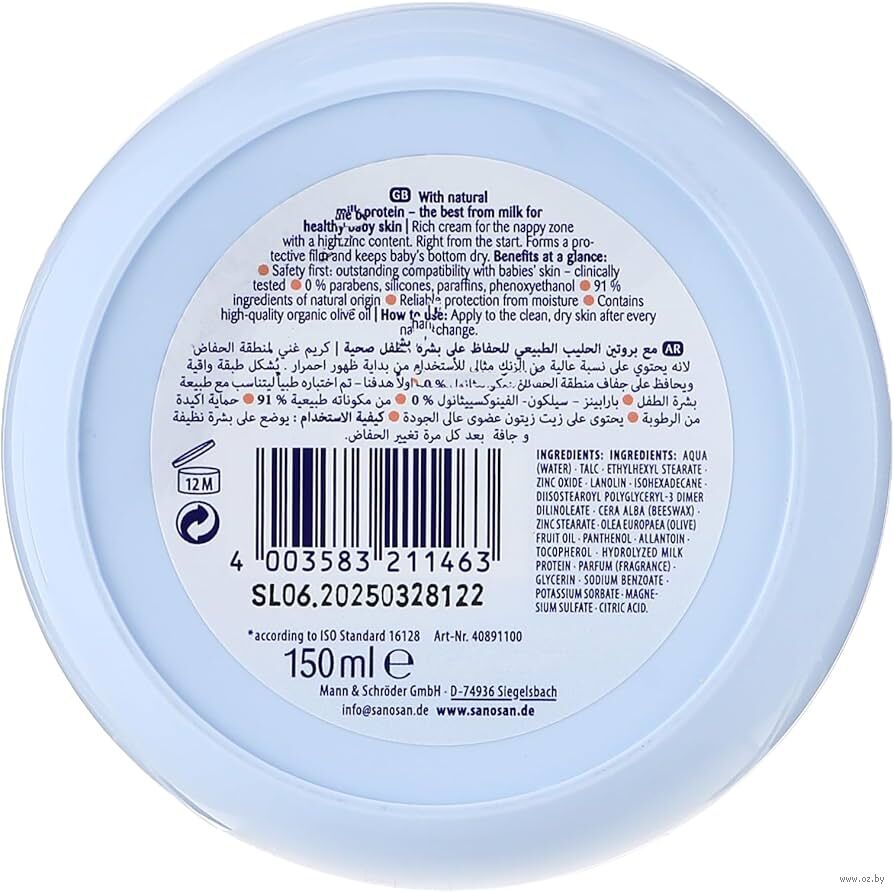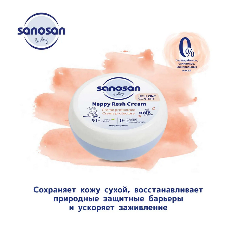 Помогает предотвратить и устранить покраснения на участках кожи, соприкасающихся с влажными подгузниками. Содержит оксид цинка, пантенол и оливковое масло.