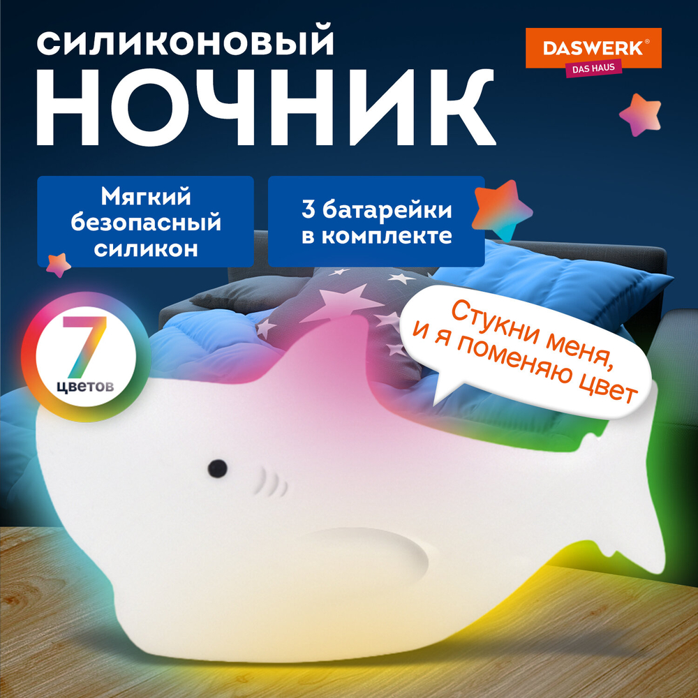 Силиконовый ночник предназначен для мягкого освещения пространства. Эта милая акула станет не только забавным элементом декора, но и поможет владельцу уснуть в комфортной обстановке.