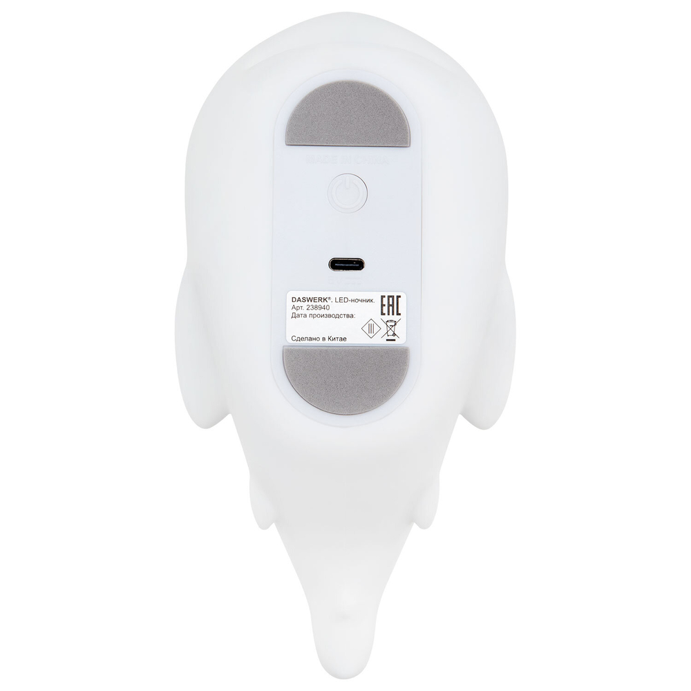 Силиконовый ночник в очаровательном дизайне мягко рассеивает свет, создавая тёплую и спокойную атмосферу в любой комнате – будь то детская, спальня или гостиная. Корпус из приятного на ощупь силикона безопасен для самых маленьких, не нагревается и устойчив к деформации, поэтому его можно использовать даже как антистресс-игрушку. Если легко стукнуть по ночнику, он поменяет цвет.