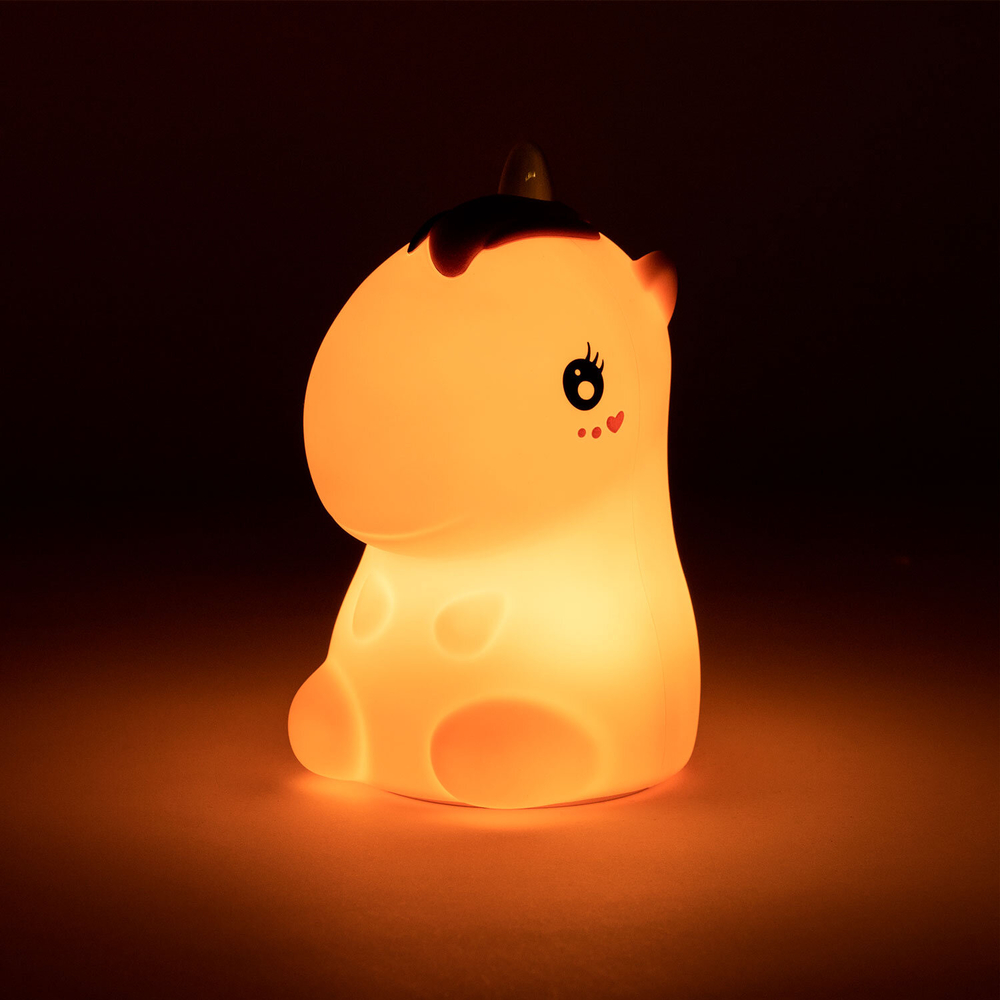 Силиконовый ночник в очаровательном дизайне мягко рассеивает свет, создавая тёплую и спокойную атмосферу в любой комнате – будь то детская, спальня или гостиная. Корпус из приятного на ощупь силикона безопасен для самых маленьких, не нагревается и устойчив к деформации, поэтому его можно использовать даже как антистресс-игрушку. Если легко стукнуть по ночнику, он поменяет цвет.