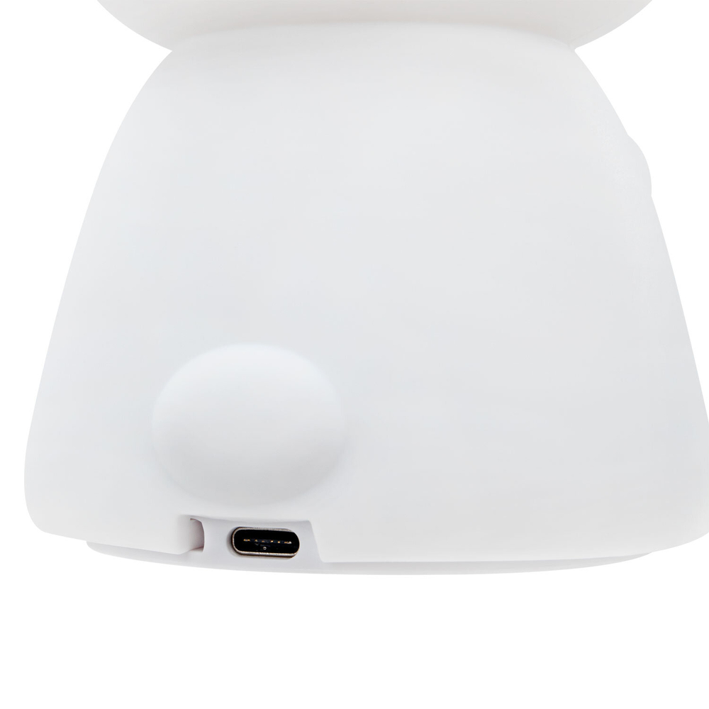 Силиконовый ночник в очаровательном дизайне мягко рассеивает свет, создавая тёплую и спокойную атмосферу в любой комнате – будь то детская, спальня или гостиная. Корпус из приятного на ощупь силикона безопасен для самых маленьких, не нагревается и устойчив к деформации, поэтому его можно использовать даже как антистресс-игрушку. Если легко стукнуть по ночнику, он поменяет цвет.