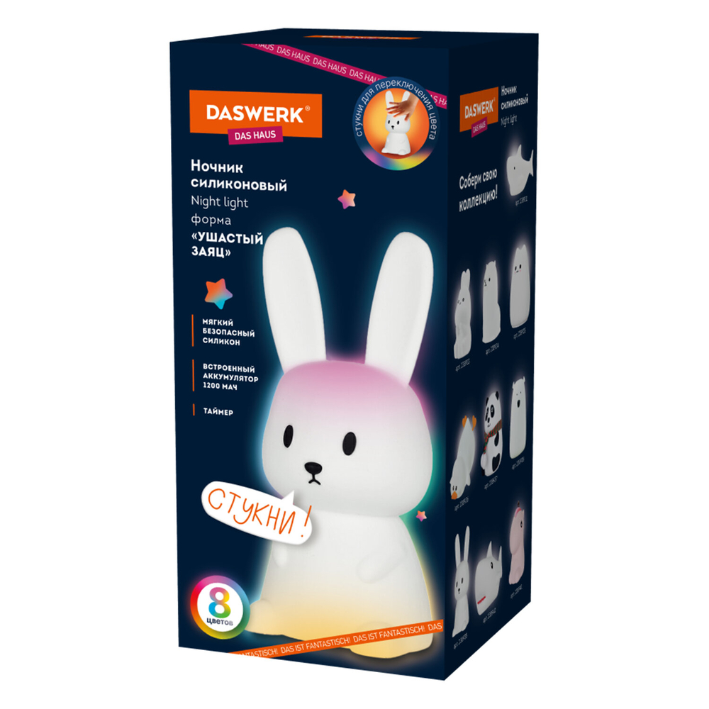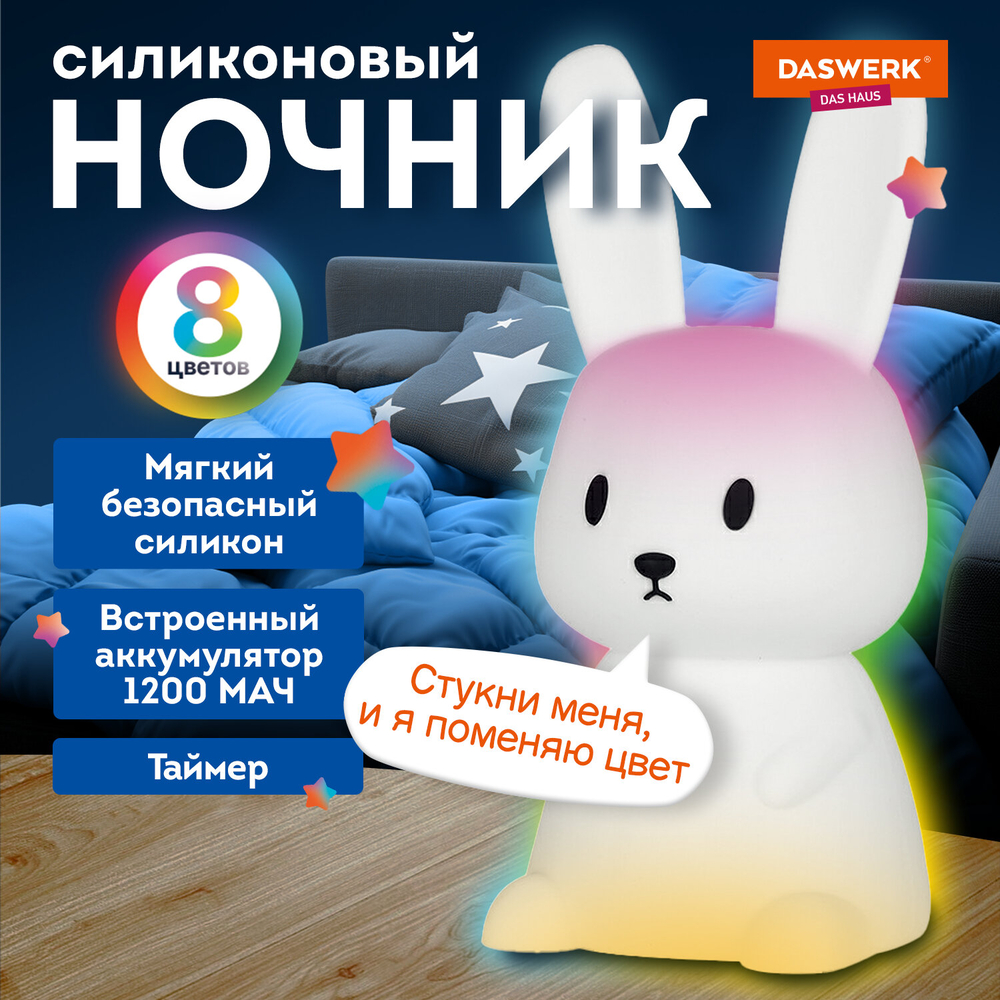 Силиконовый ночник предназначен для мягкого освещения пространства. Этот милый ушастый заяц станет не только забавным элементом декора, но и поможет владельцу уснуть в комфортной обстановке.
