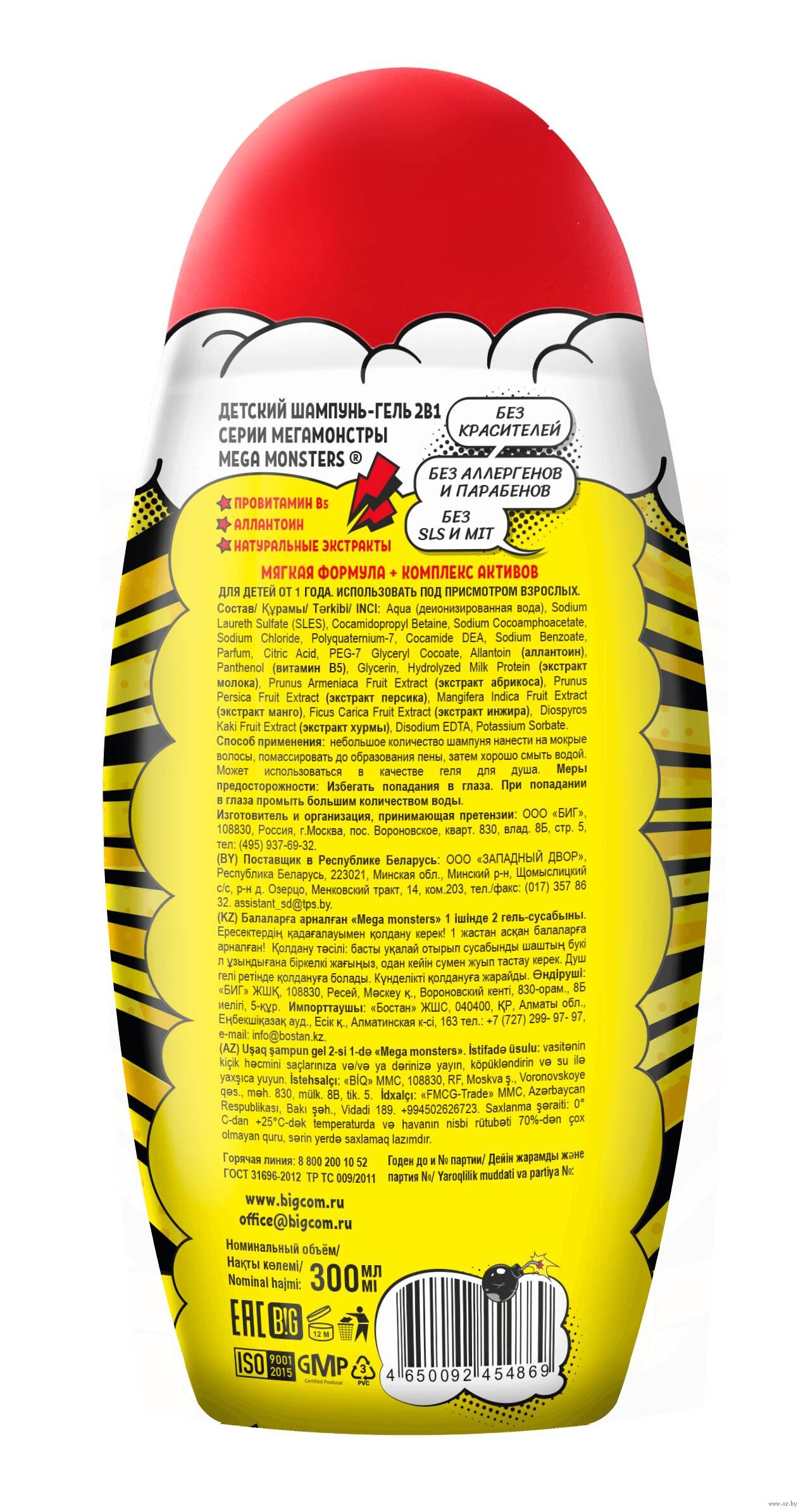 Важный момент заботы о волосах – это выбор подходящего шампуня. Серия Мегамонстры адаптирована к потребностям детской кожи и волос. Мягкая формула и комплекс активов обеспечивают надлежащий уход и бережное очищение. Яркий конфетный аромат придает бодрость и настраивают на подвиги и свершения.