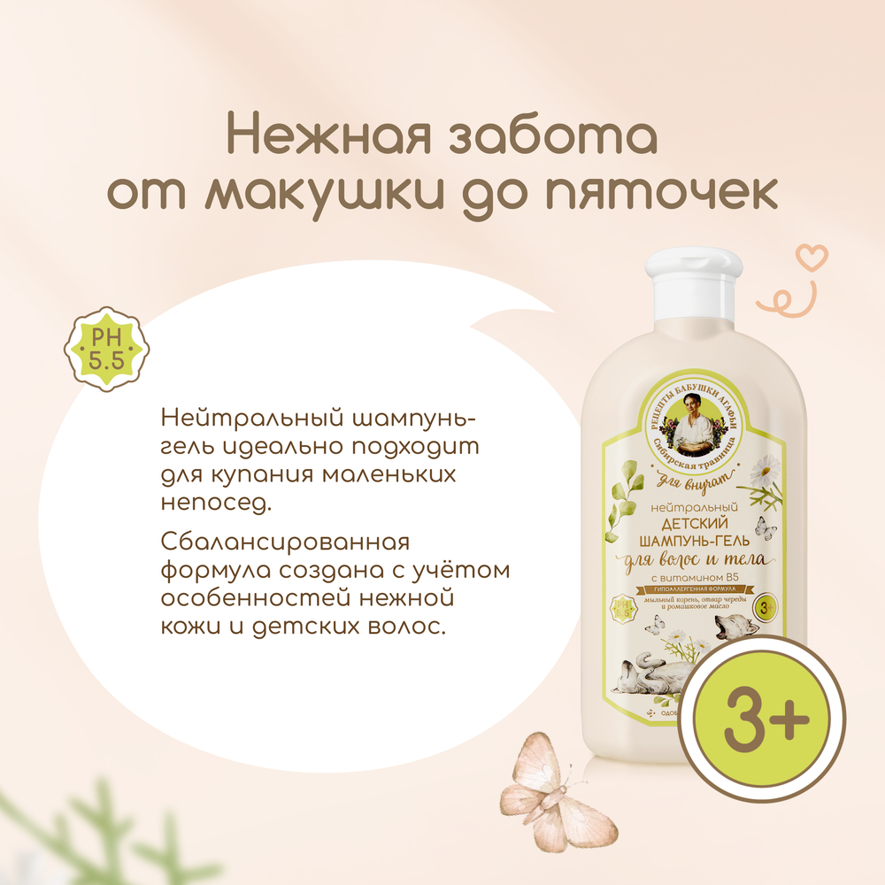 Нейтральный шампунь-гель идеально подходит для купания маленьких непосед от макушки до пяточек. Его сбалансированная формула создана с учётом особенностей нежной кожи и детских волос.