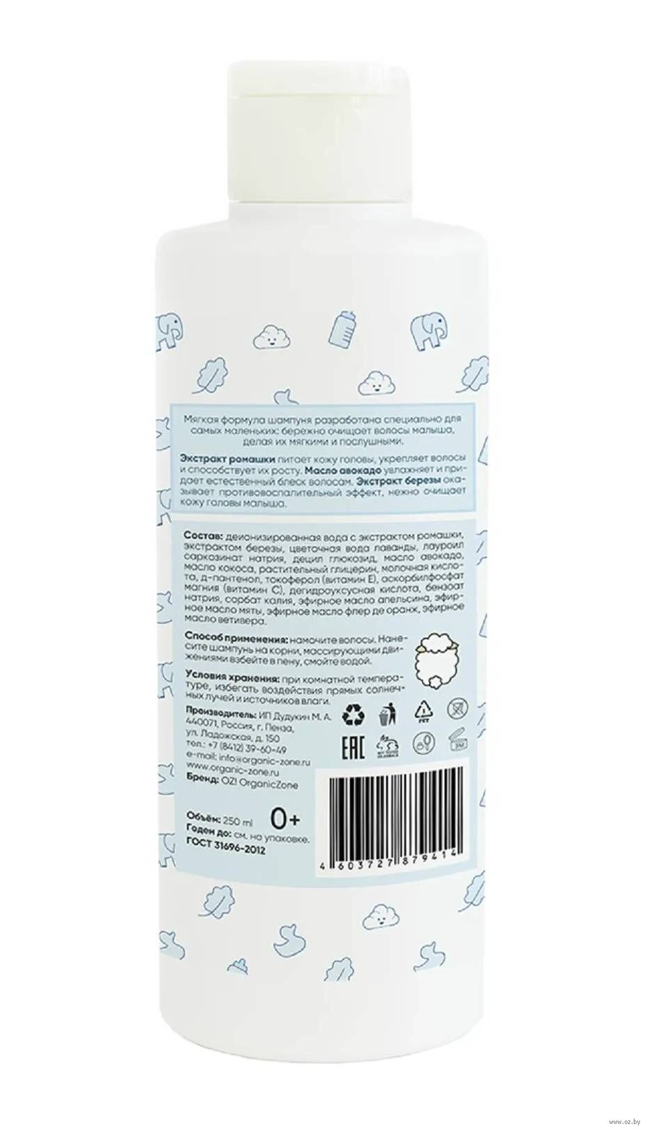 Масло авокадо увлажняет и придает естественный блеск волосам. Экстракт березы оказывает противовоспалительный эффект, нежно очищает кожу головы малыша.