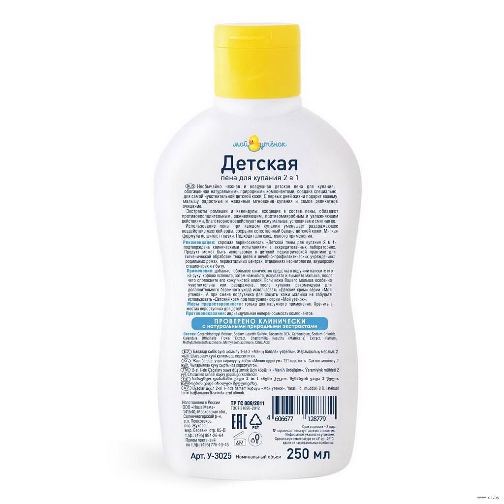 Пенка для купания детская "Мой утёнок. 2 в 1" предназначена для очищения тела и комфортного купания малышей. Рекомендовано для регулярного использования с первых дней жизни.