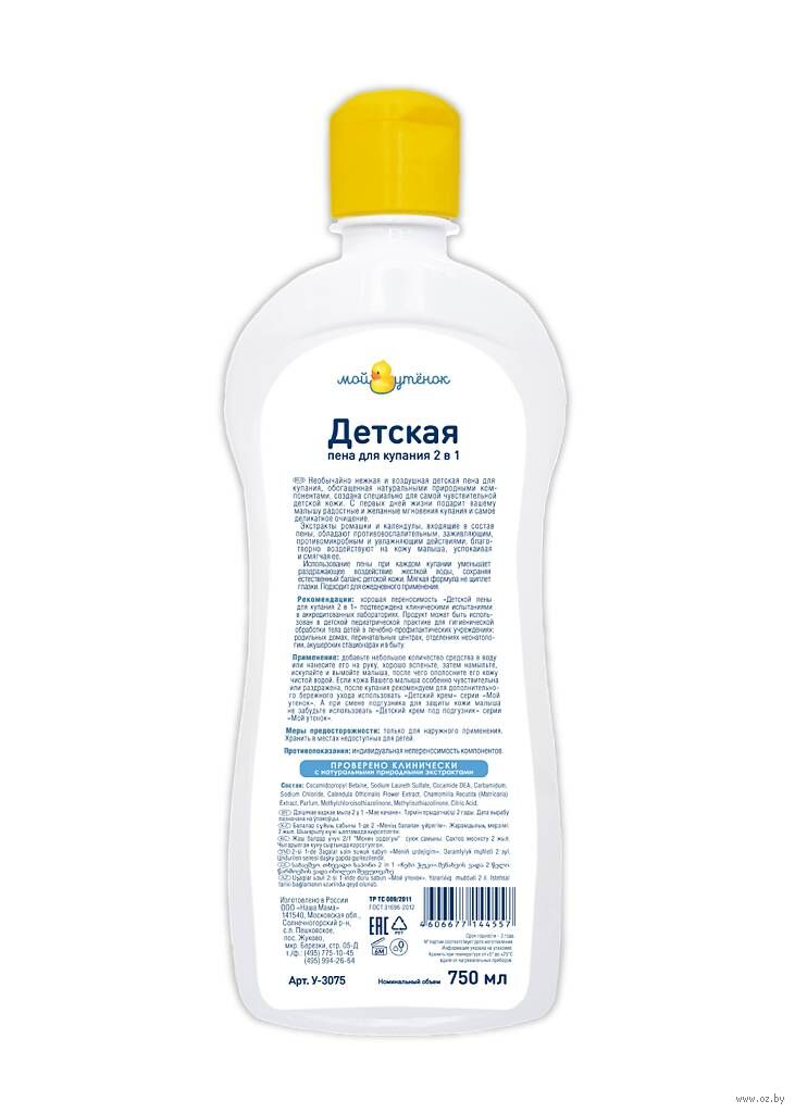 Пенка для купания детская "Мой утёнок. 2 в 1" (750 мл)