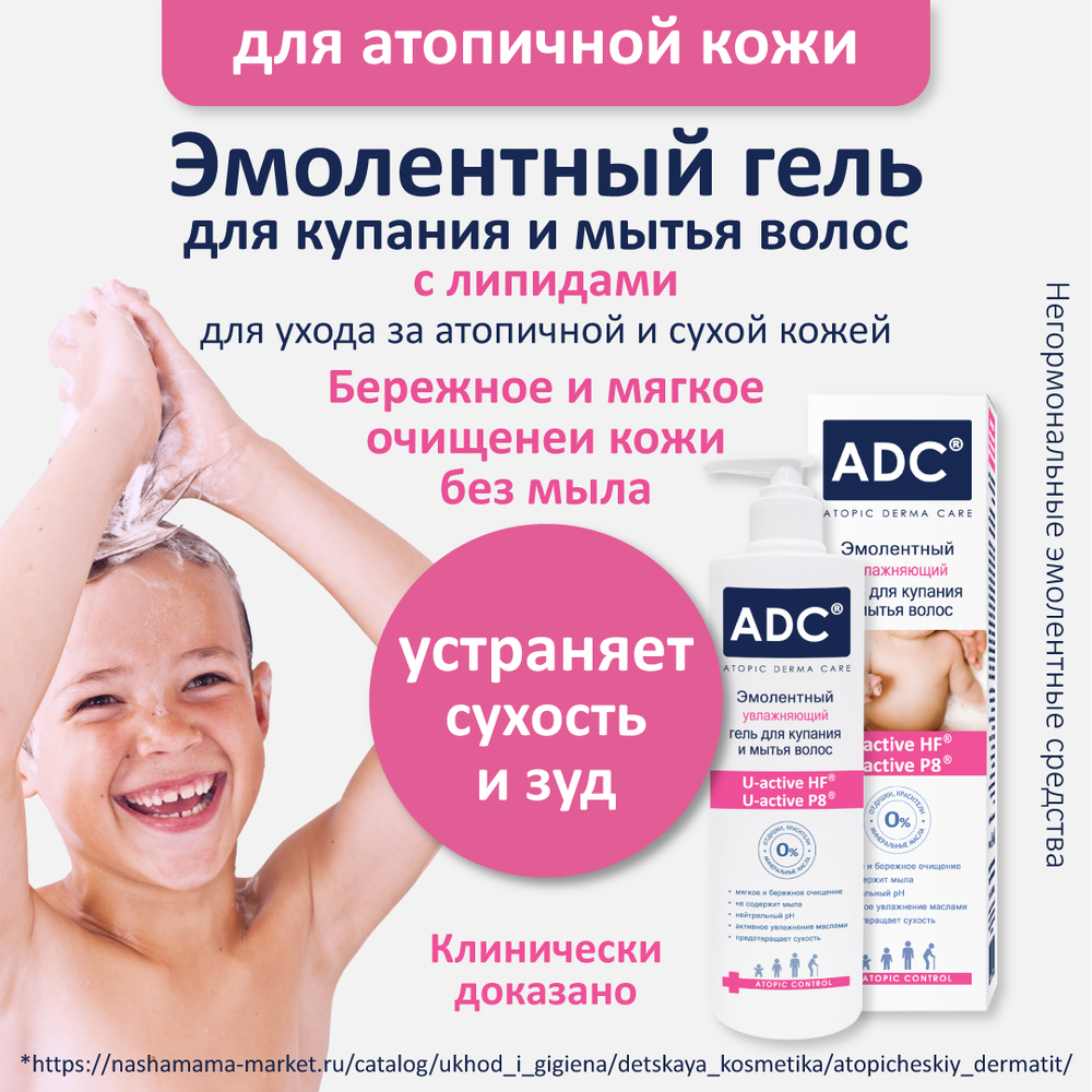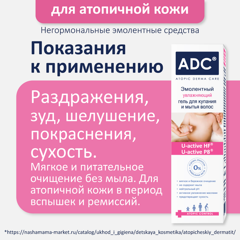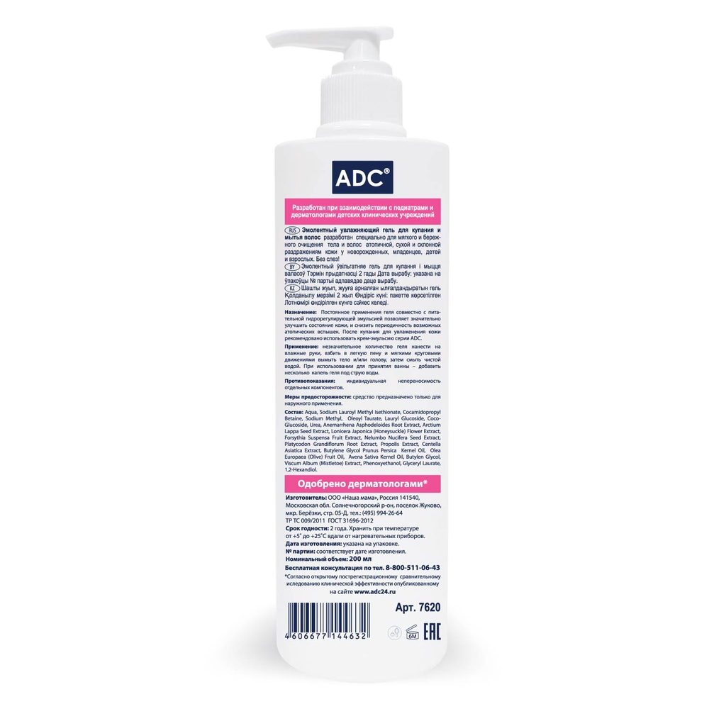 Эмолентный увлажняющий гель для купания и мытья волос серии "ADC" для ежедневного ухода и бережного очищения атопичной, сухой и склонной к раздражению кожи у новорожденных, младенцев, детей и взрослых. Разработан специально для мягкого и бережного очищения тела и волос атопичной, сухой и склонной к раздражению кожи у новорожденных, младенцев, детей и взрослых.