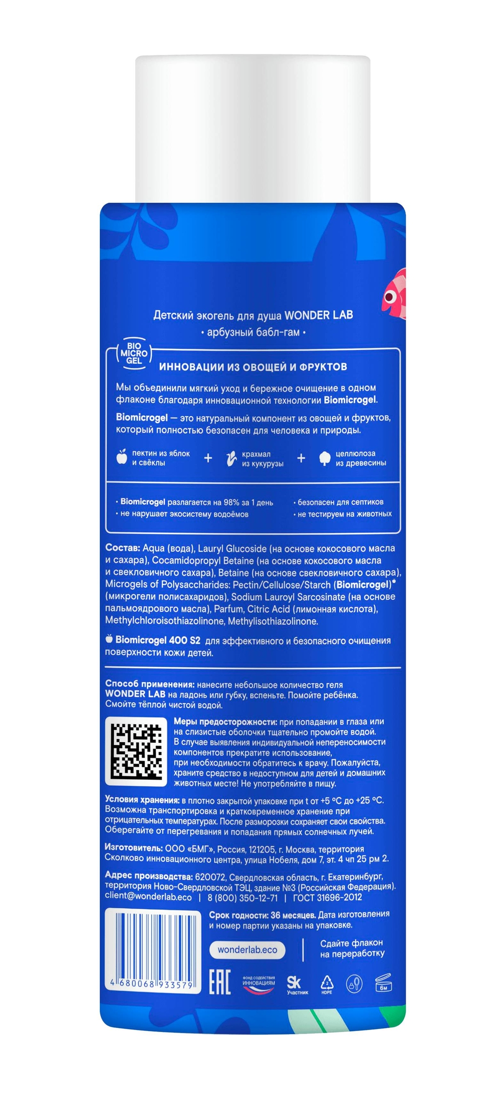 Уникальная формула экогеля разработана для сохранения барьерной функции кожи, обеспечивая бережное очищение без агрессивных компонентов. Продукт не содержит сульфатов, парабенов, силиконов и минеральных масел, что делает его максимально безопасным для самых маленьких.