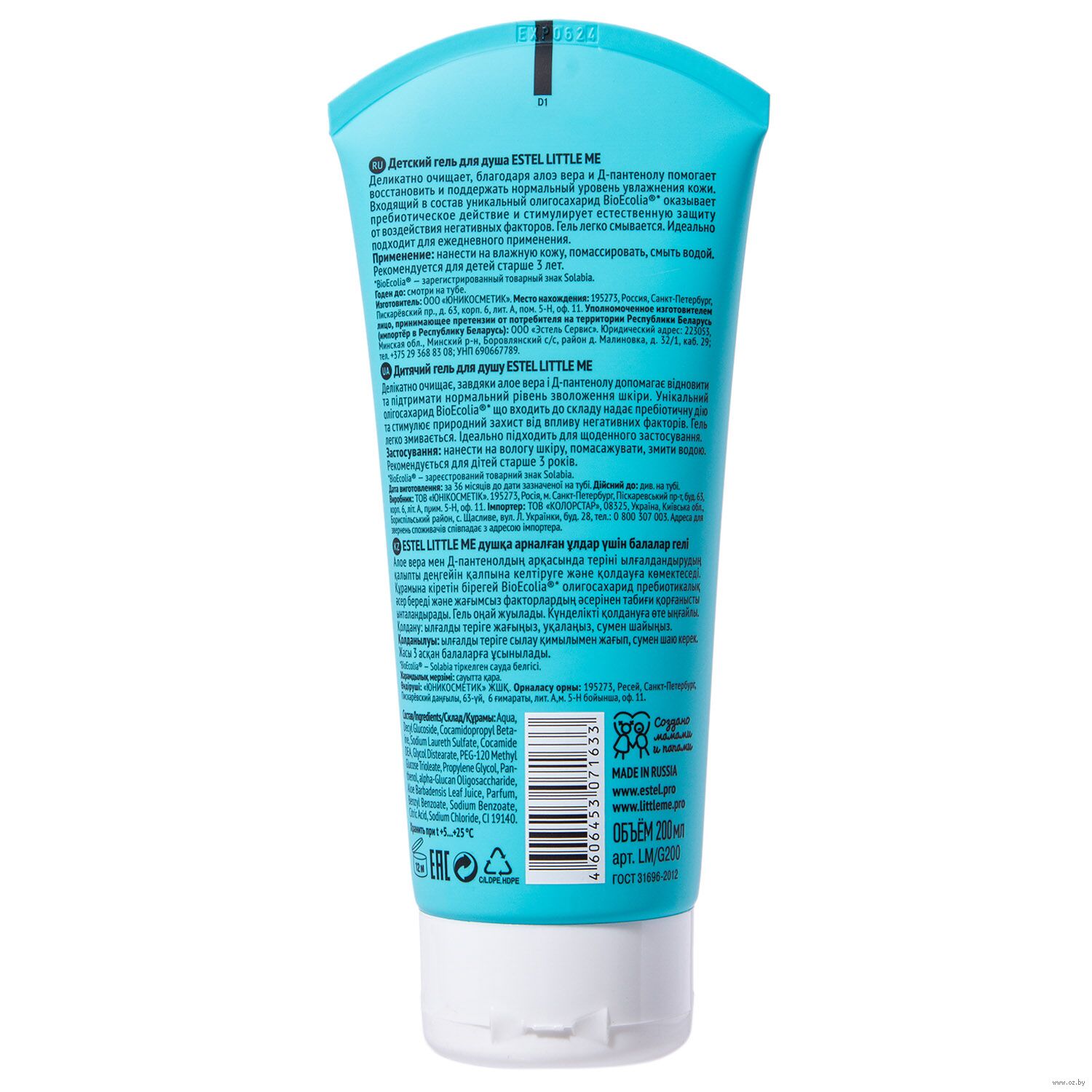 Входящий в состав уникальный олигосахарид BioEcolia®* оказывает пребиотическое действие и стимулирует естественную защиту от воздействия негативных факторов. Гель легко смывается.