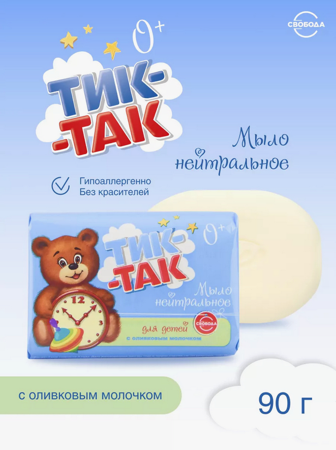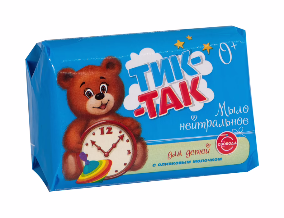 Детское нейтральное мыло "Тик-так" с оливковым молочком вырабатывается из высококачественных натуральных тропических масел.