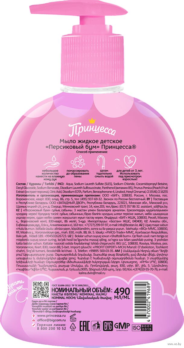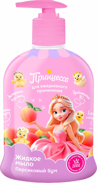 Нежный аромат персика раз за разом поднимает настроение Принцессе, нежный состав мыла обеспечивает чистоту и уход ее маленьким ручкам.