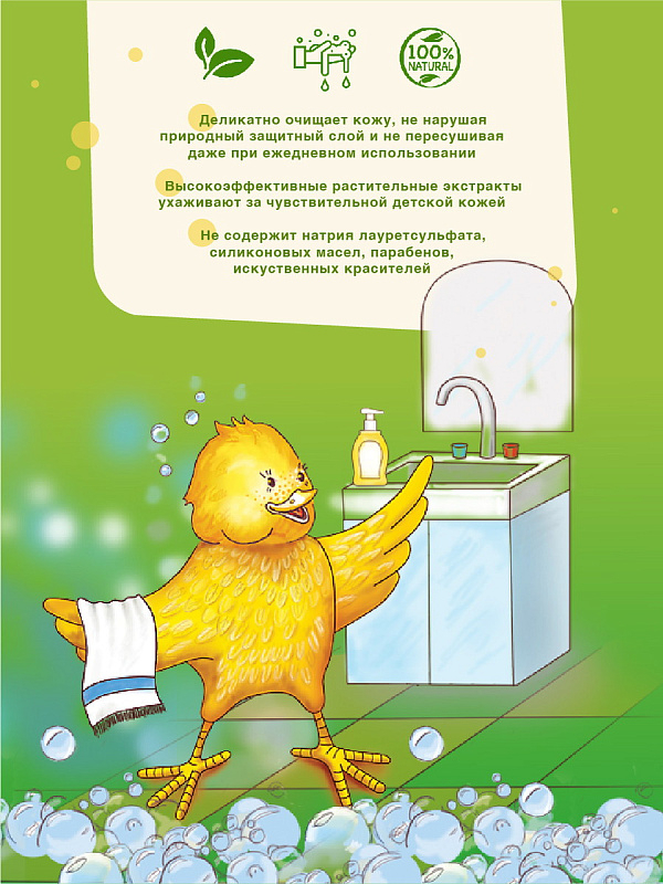 Не содержит мыла, создана специально для особенно нежной кожи интимной зоны малыша.