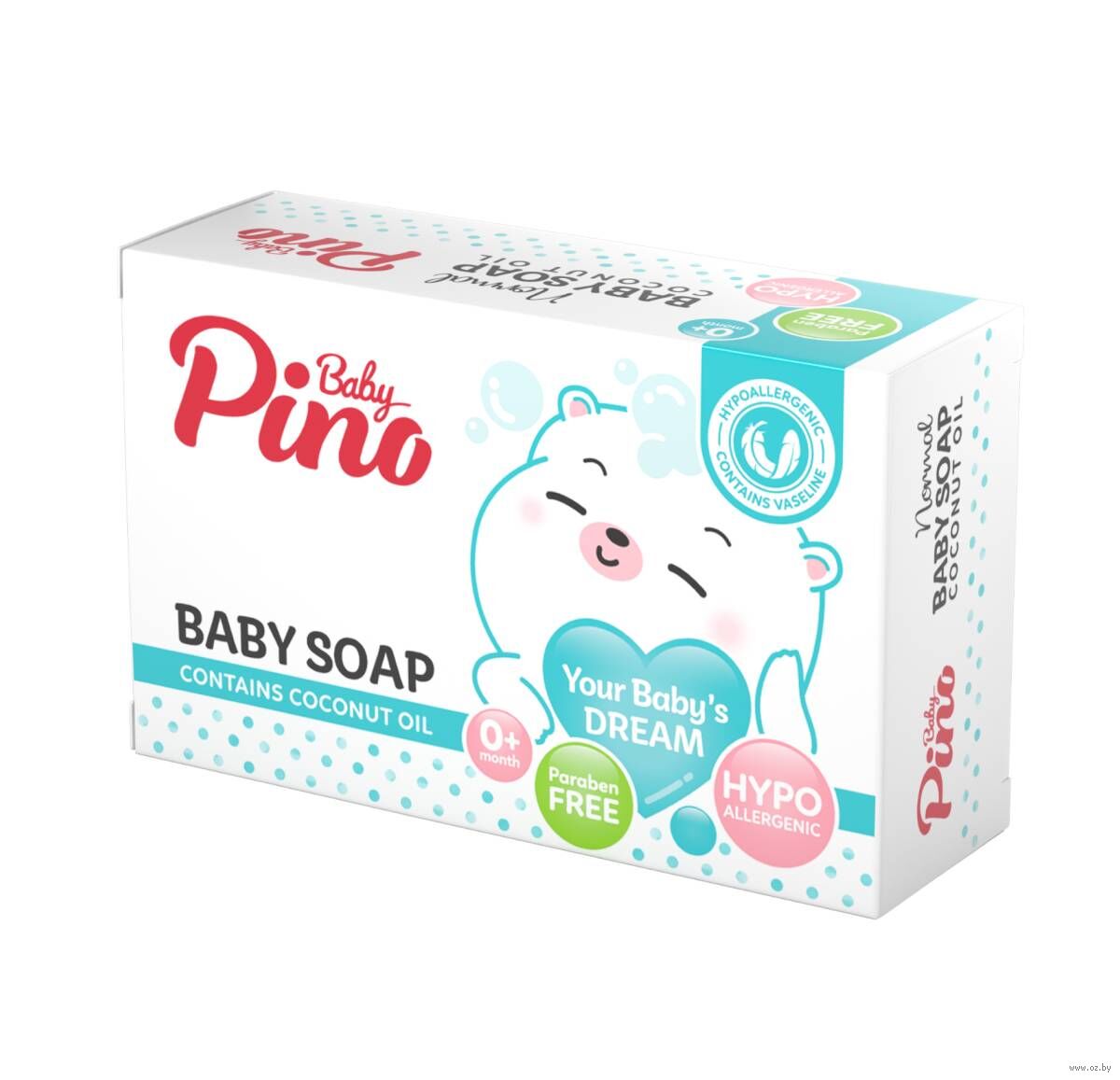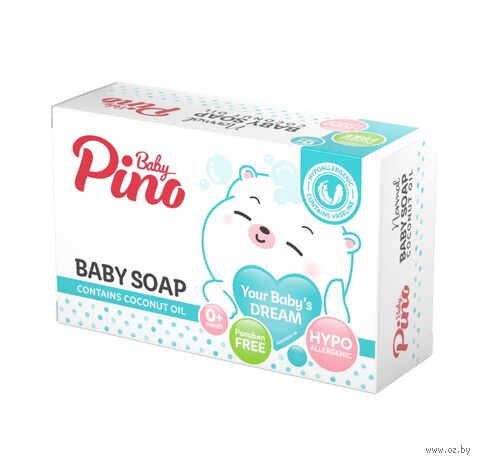 Детское мыло Baby Pino не содержит парабенов, SLS, SLES, спирта, красителей и разработано с учетом особенностей детской кожи. Гипоаллергенно.