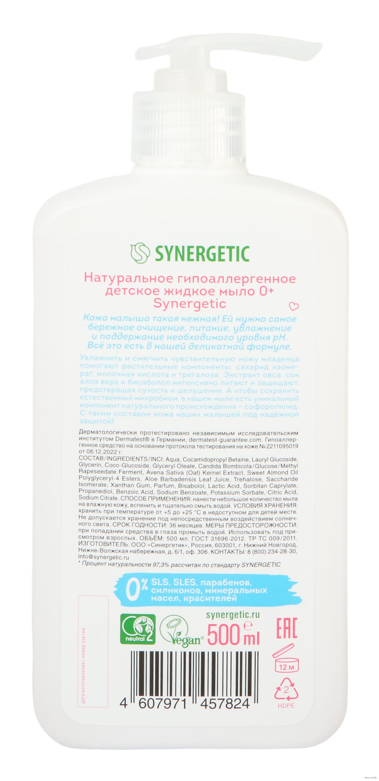 Натуральное гипоаллергенное детское жидкое мыло 0+ мягко очищает кожу малыша, сохраняя естественный уровень pH. Мыло хорошо пенится и легко смывается водой.