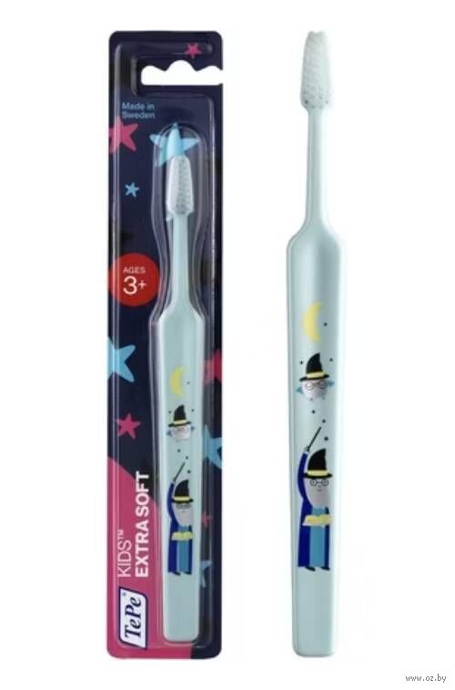 "TePe Kids" – зубная щетка для детей от 3 лет. Зубная щетка имеет красочный рисунок и небольшую, удобную ручку.