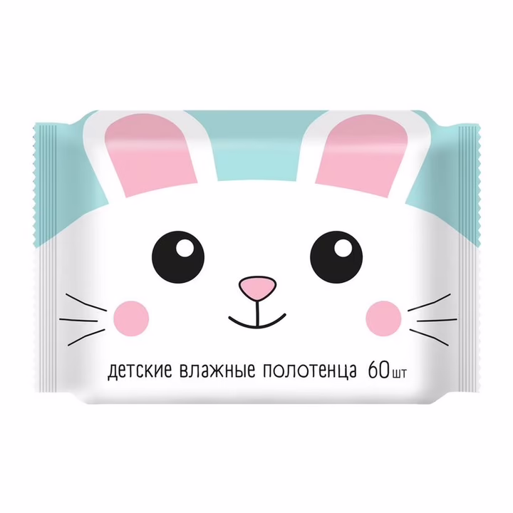 Влажные полотенца детские "С экстрактом ромашки, алоэ и витамином Е" (60 шт.)