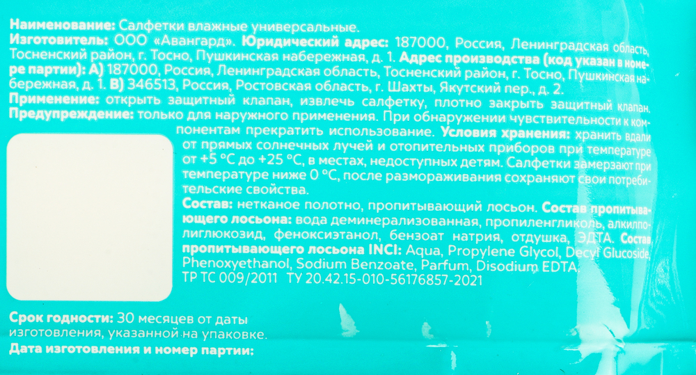 Открыть защитный клапан, извлечь салфетку, плотно закрыть защитный клапан.Состав