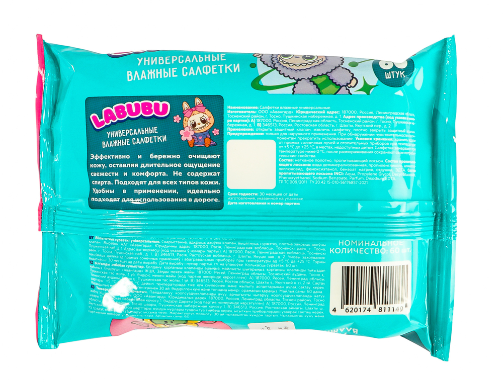 Салфетки влажные Labubu – идеальный выбор для заботливых родителей, которые хотят обеспечить своему ребенку чистоту и комфорт в любых ситуациях. Этот набор из 60 салфеток сочетает в себе безопасность, практичность и удобство, делая их незаменимыми спутниками вашего малыша в школе, на улице и в повседневной жизни.