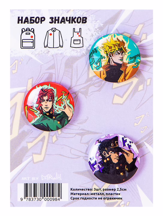 Набор из трёх тематических значков. Приколите их на рюкзак или одежду и они будут радовать вас изо дня в день.