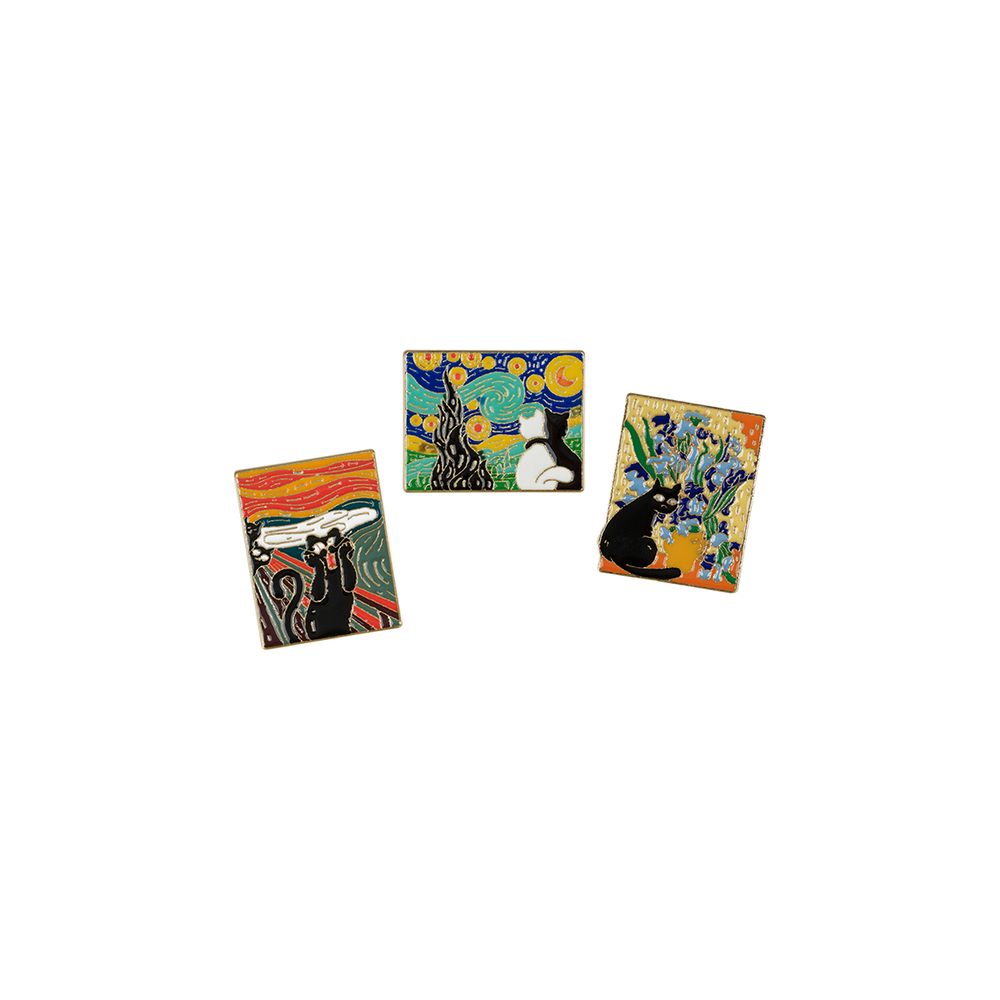 Набор металлических значков "Cats and art" поможет украсить худи, джинсовку, косуху или рюкзак, придав вещи индивидуальности. В набор входят три аксессуара, которые сочетаются между собой.