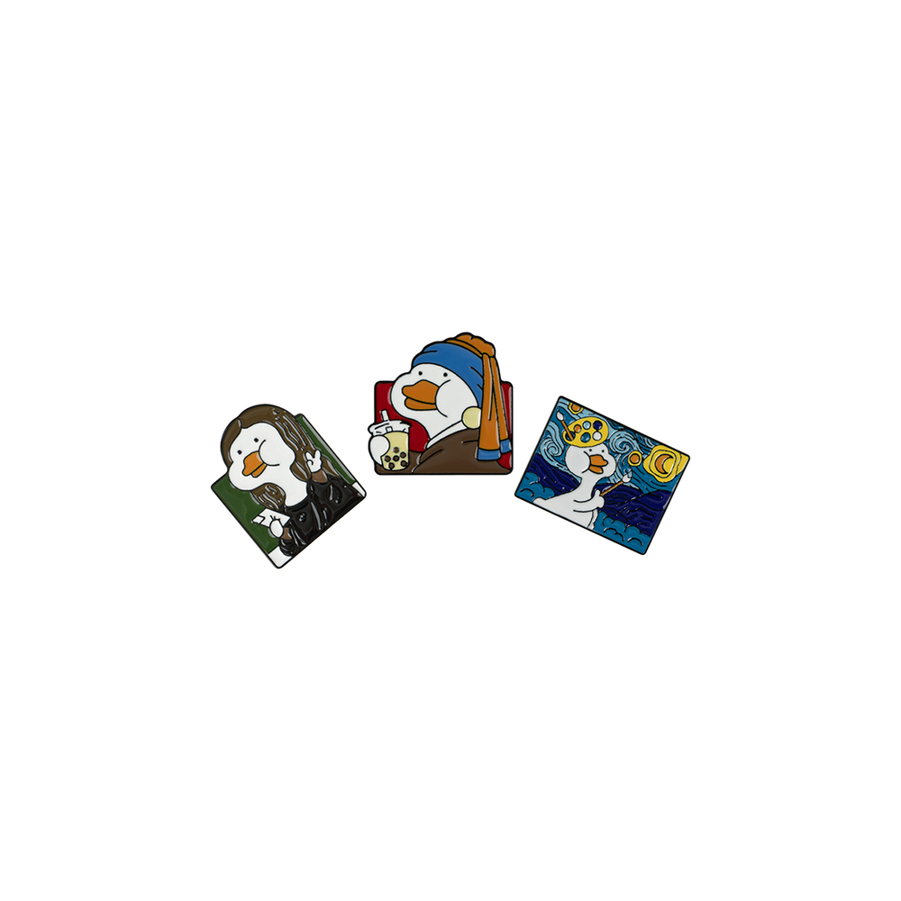 Набор металлических значков "Ducks and art" поможет украсить худи, джинсовку, косуху или рюкзак, придав вещи индивидуальности. В набор входят три аксессуара, которые сочетаются между собой.