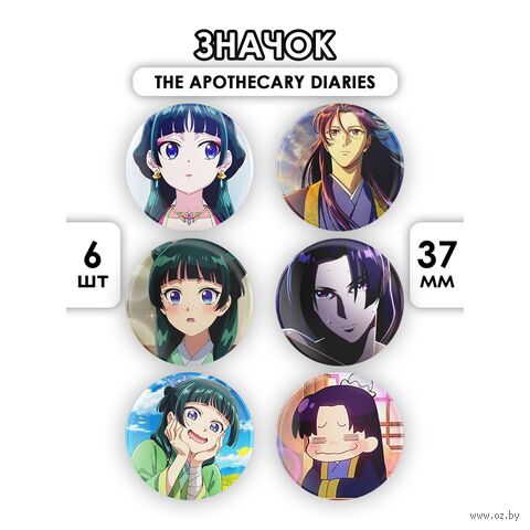 Стильный металлический значок с яркими рисунками аниме и манга Монолог фармацевта (The Apothecary Diaries) с персонажами Маомао Maomao, Джинши, Дзинси.