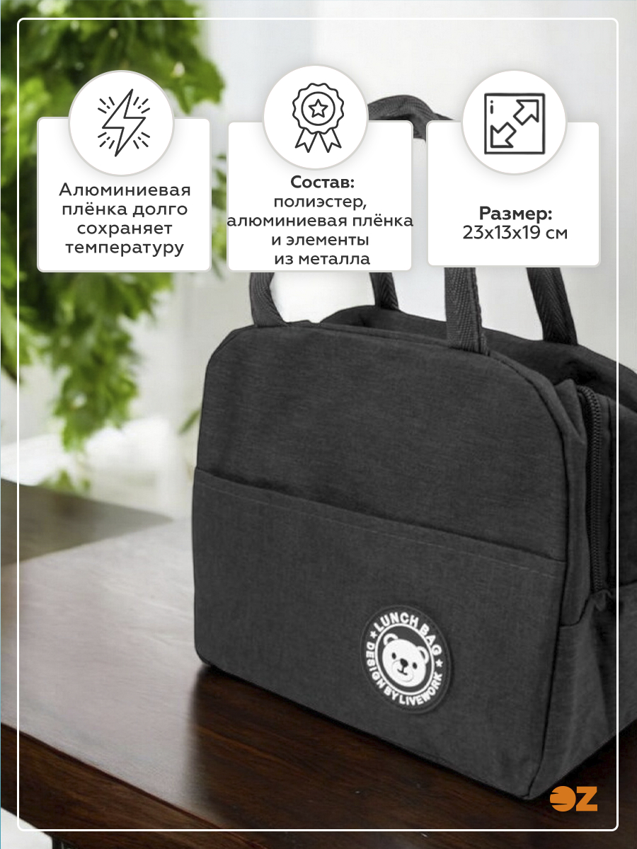 В термосумке с внутренней стороны использована алюминиевая плёнка, благодаря которой она максимально долго сохраняет температуру продуктов или напитков.