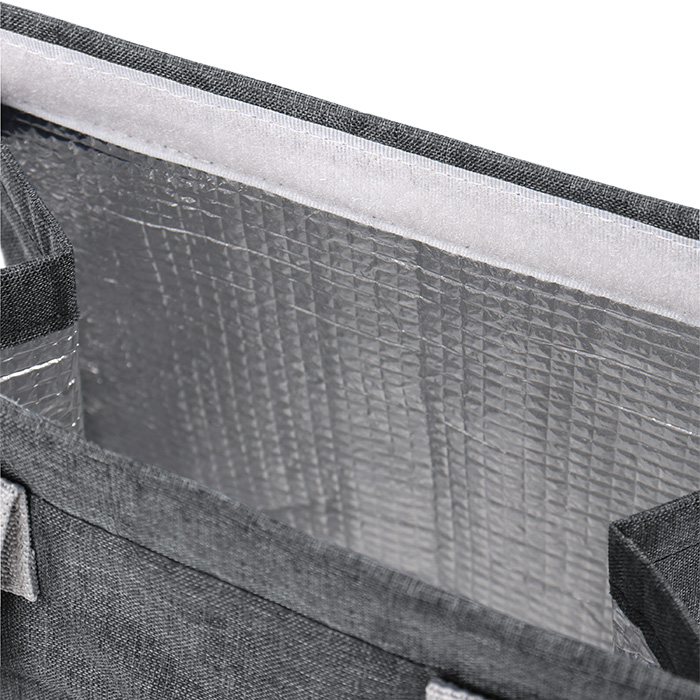 В термосумке с внутренней стороны использована алюминиевая плёнка, благодаря которой она максимально долго сохраняет температуру продуктов или напитков.