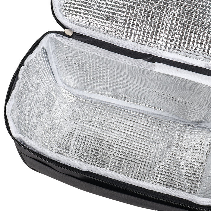 В термосумке с внутренней стороны использована алюминиевая плёнка, благодаря которой она максимально долго сохраняет температуру продуктов или напитков.