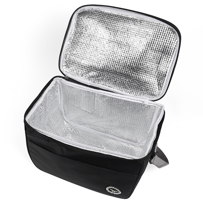 В термосумке с внутренней стороны использована алюминиевая плёнка, благодаря которой она максимально долго сохраняет температуру продуктов или напитков.