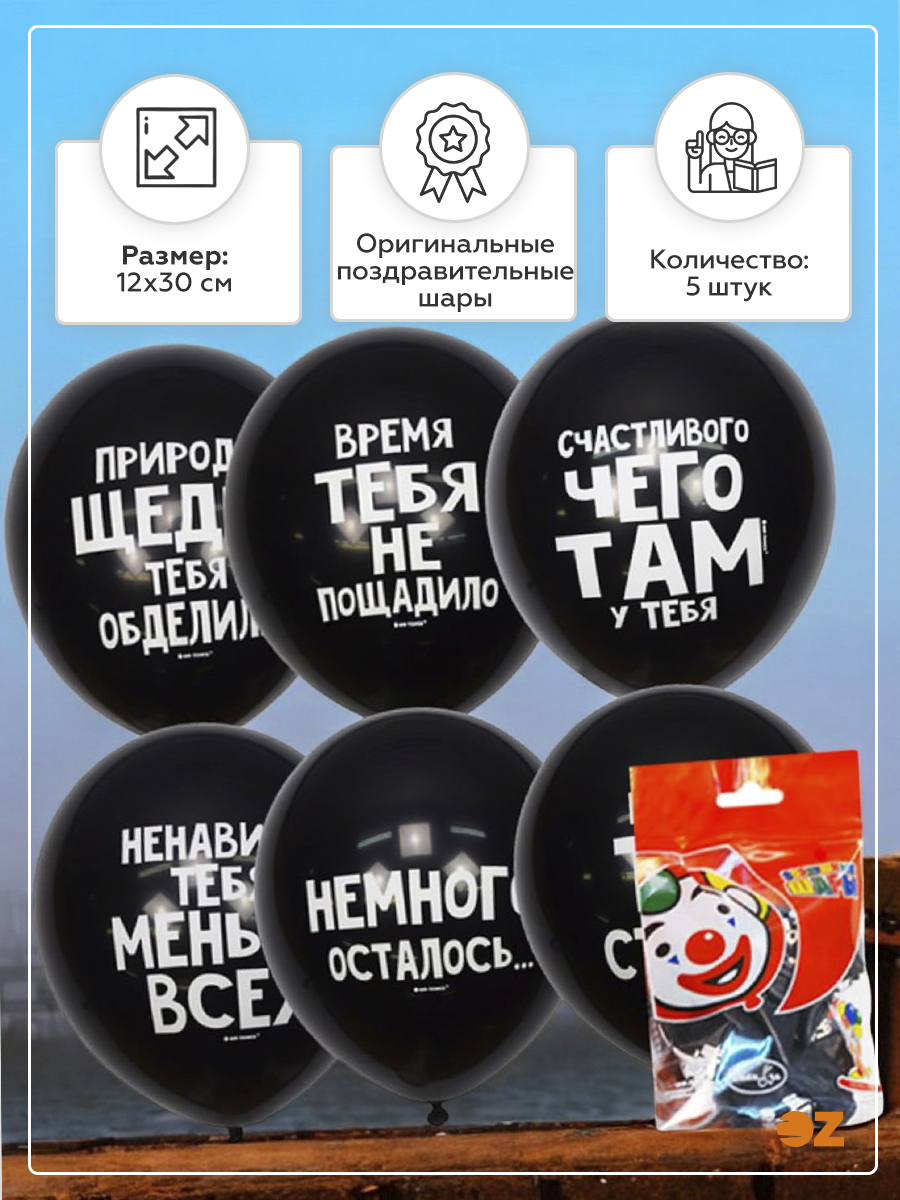 Оригинальные поздравительные шары со смешными надписями. Подойдут и для девушек, и для юношей.