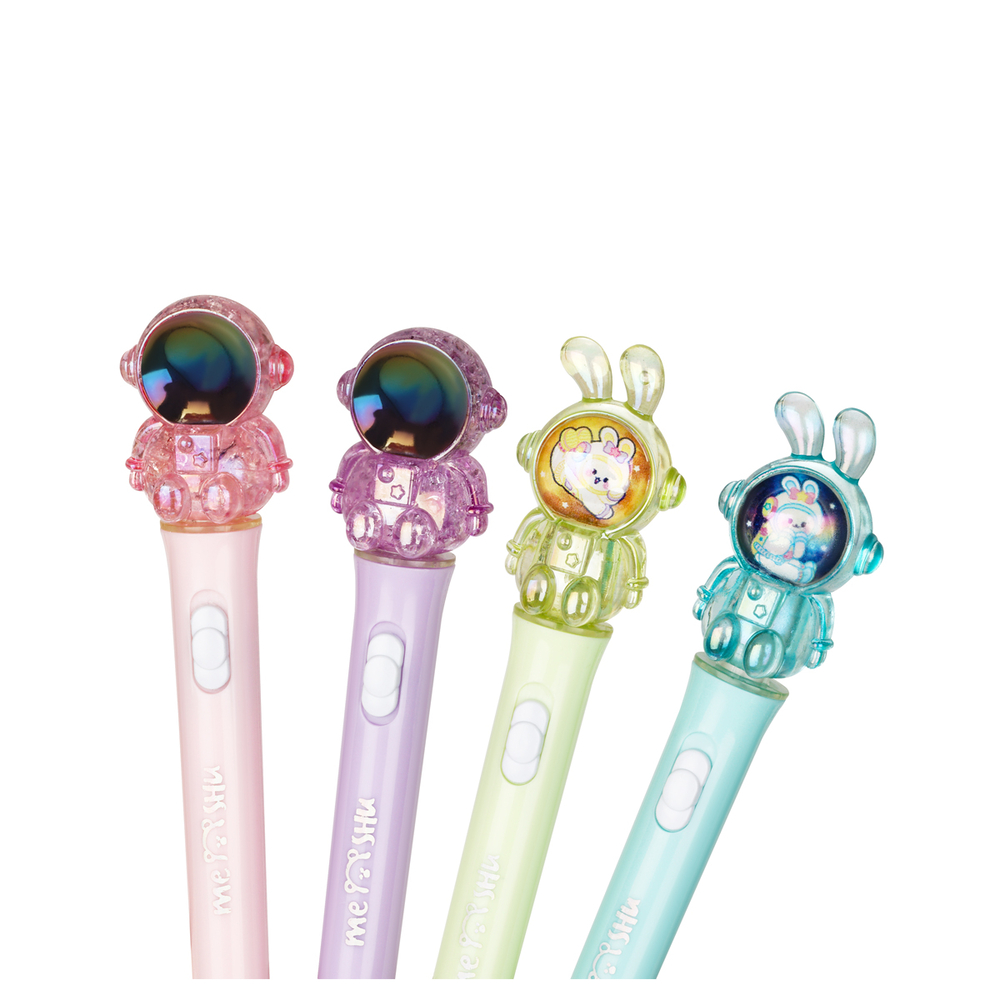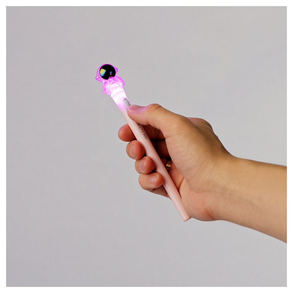 Корпус ручки украшен ярким стильным топпером в форме космонавта. Фигурка имеет подсветку разных цветов.