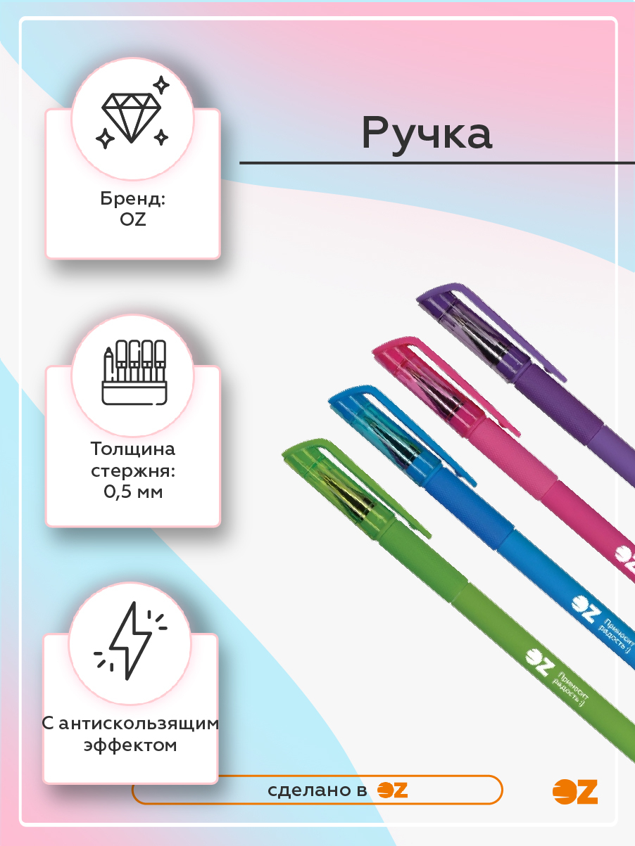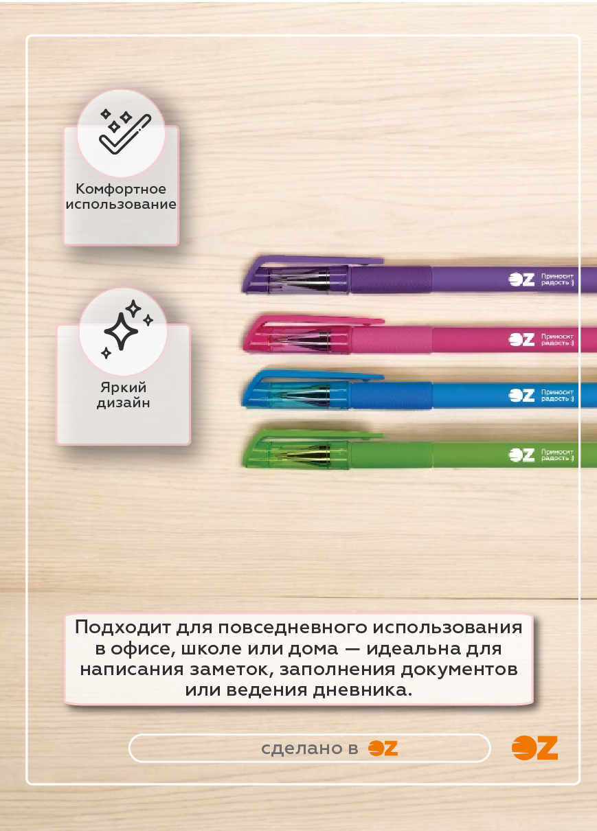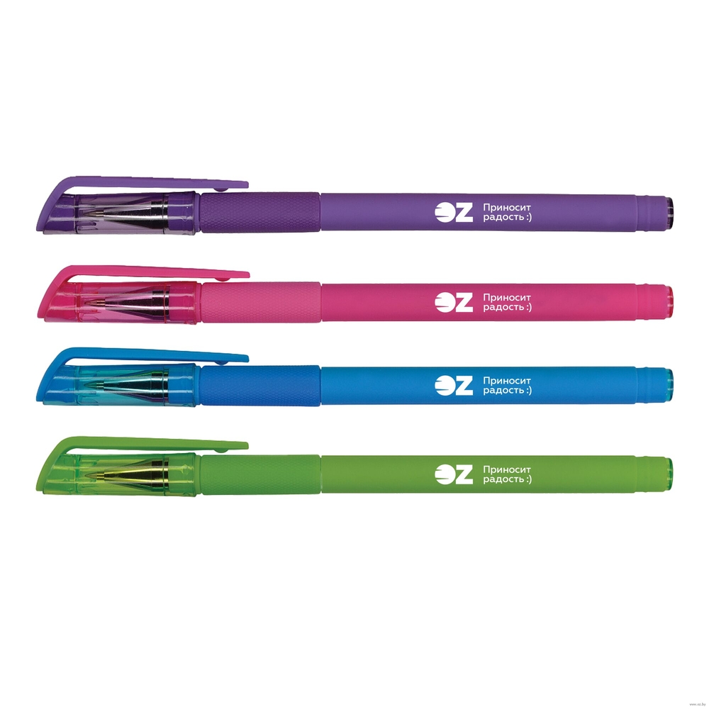 Все ручки снабжены яркими колпачками с упругим клип-зажимом под цвет корпуса.