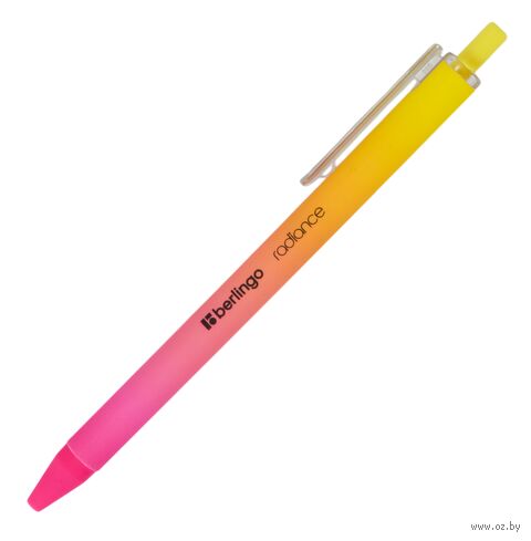 Шариковая автоматическая ручка из кросс-серии Berlingo "Radiance" несет в себе тренд сезона – неоновый градиент. Комбинация этого эффекта с покрытием soft-touch делают эту ручку модным канцелярским аксессуаром. Ручка представлена с пластиковым прозрачным клипом.