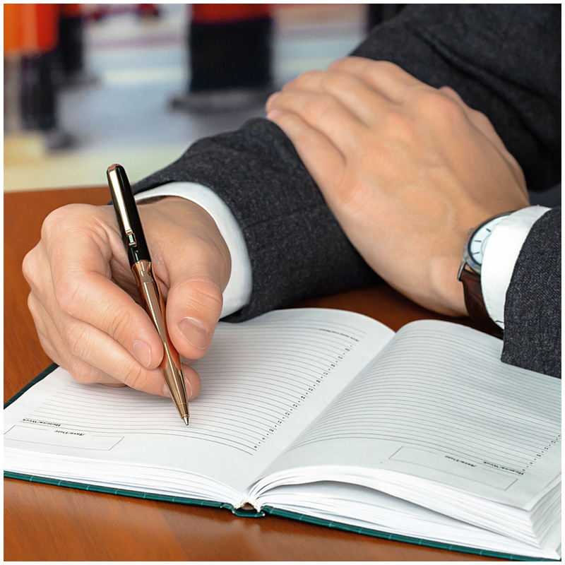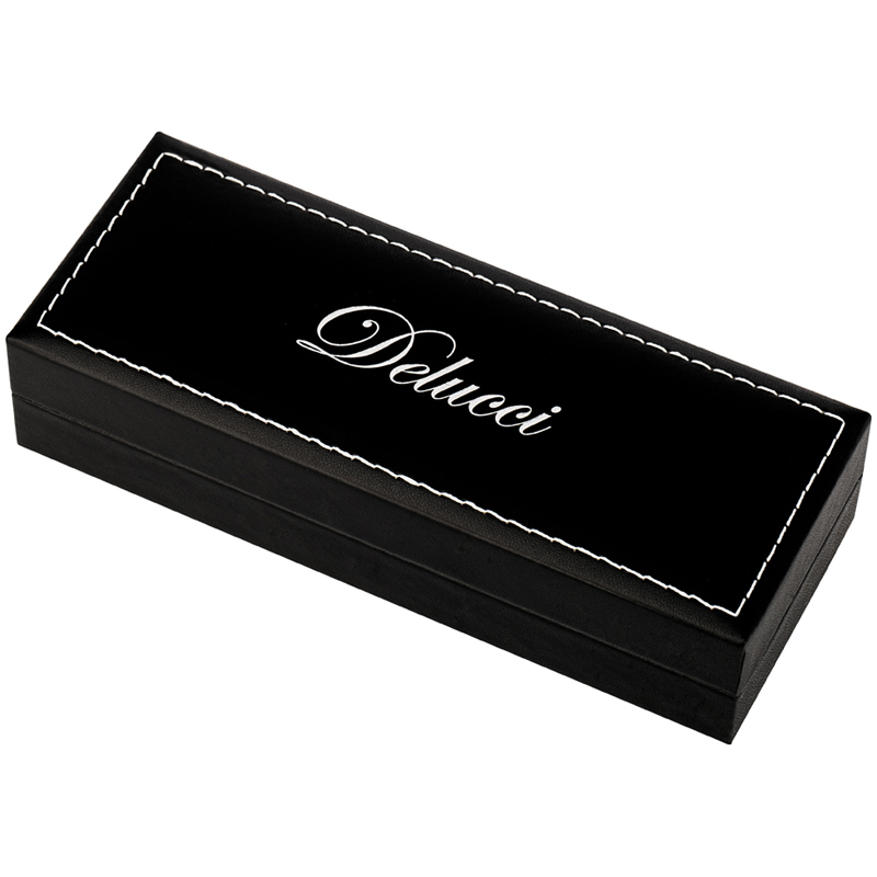 Delucci Evento оснащена поворотным механизмом, внутри которого расположен пишущий стержень диаметром 1 мм, который идеально подходит для быстрого стиля письма. Упакована в футляр с откидной крышкой.