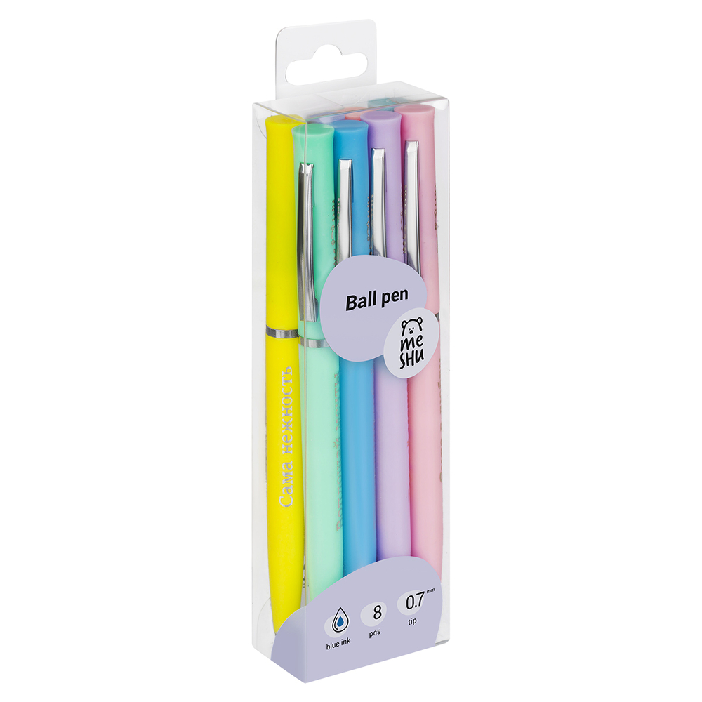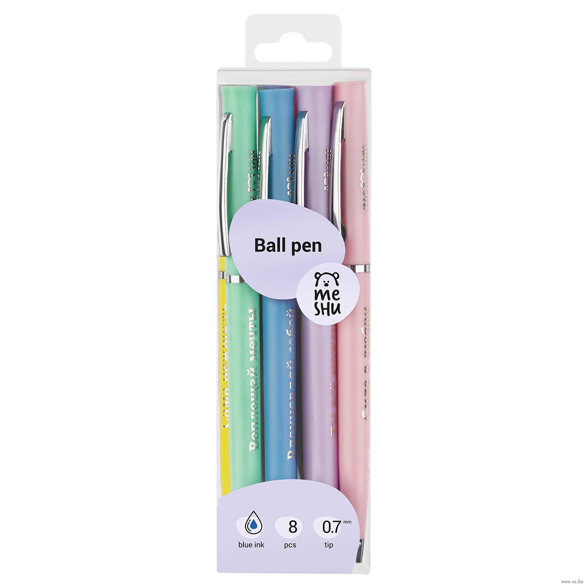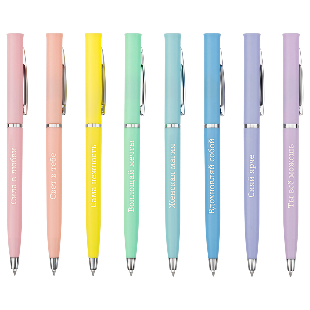Ручки с классическим дизайном дополнены вдохновляющими надписями, которые поднимут настроение в течение дня. Благодаря чернилам синего цвета ручку можно ежедневно использовать в работе или учёбе.