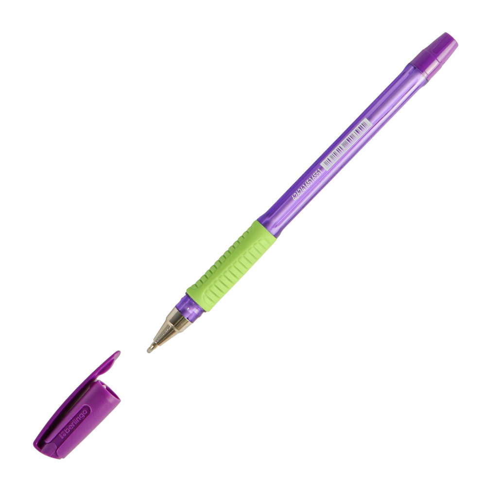 Крупная текстура грипа и утолщение-упор для пальцев в нижней его части обеспечивают максимальный комфорт. Стержень ручки заправлен светло-синими немажущими чернилами, гарантирующими аккуратную линию и чистоту письма.