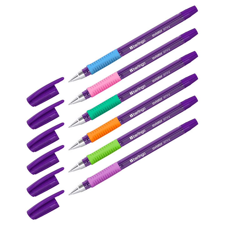 Шариковая ручка Berlingo Aviator – воплощение функционала и качества, и один из флагманов ассортимента бренда. Модель выполнена в массивном корпусе в ярких фирменных цветах бренда, получивших название Envy. Зона захвата оснащена мягким трехгранным резиновым грипом для предотвращения скольжения во время использования.