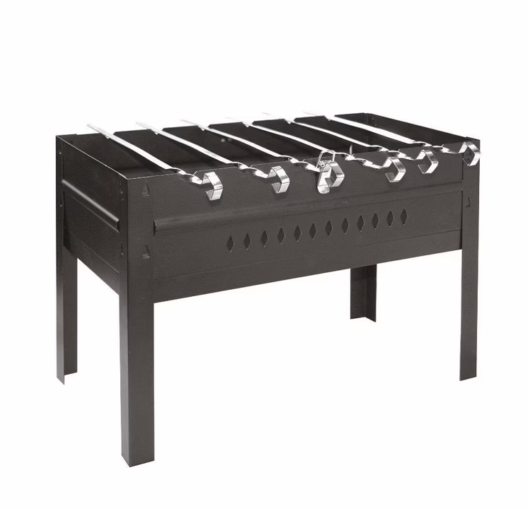Прочный и долговечный мангал, изготовленный из стали 0,9 мм толщиной. Покрыт высокотемпературной краской, придающей конструкции коррозионностойкие свойства. Ребра жесткости делают корпус мангала устойчивым к воздействию жара.