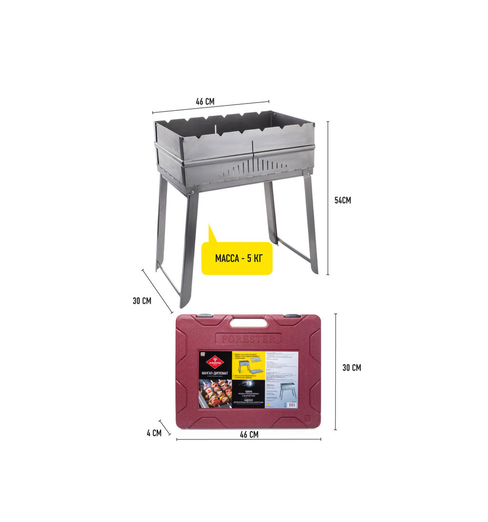 Устойчивая конструкция с высокими ножками обеспечивает удобство использования. Пластиковый чемодан удобен для хранения и транспортировки мангала, легко моется.