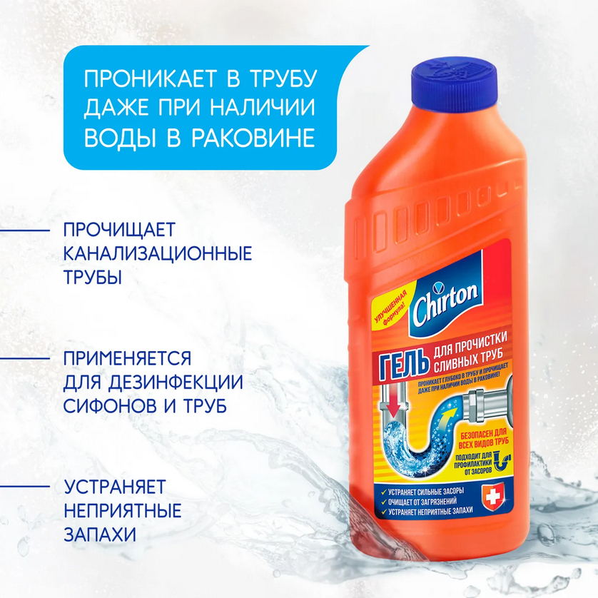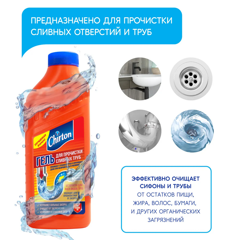 Гель для прочистки канализационных труб "Chirton" (500 мл)