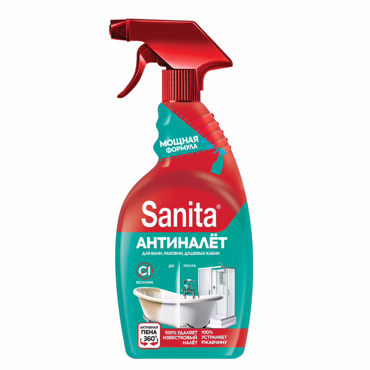 Sanita Антиналет и Антиржавчина специально разработан для изделий из нержавеющей стали и отлично подходит для керамики, кафеля, фаянса, эмалированных и стеклянных поверхностей, придает устойчивый блеск и полирует. Он эффективно удаляет жир, налет, нагар и пятна, не оставляя разводов.