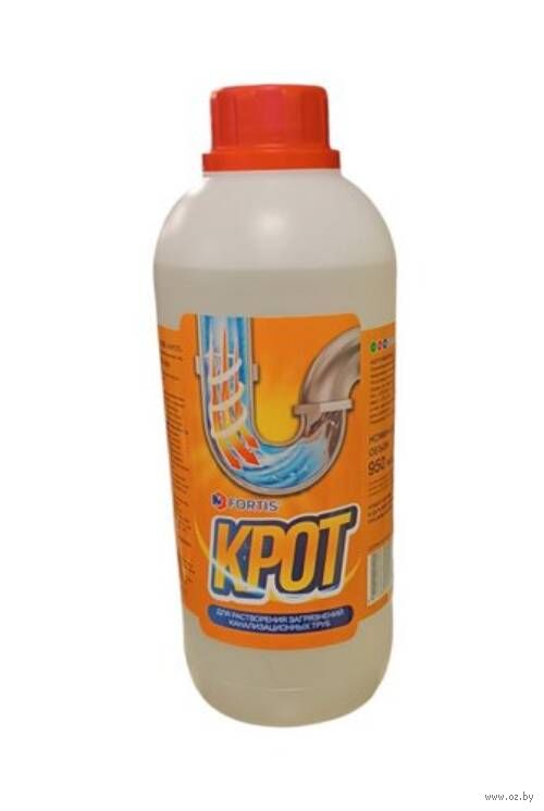 Средство чистящее "Крот" предназначено для очистки канализационных труб в быту. Представляет собой водный раствор едкого натра.