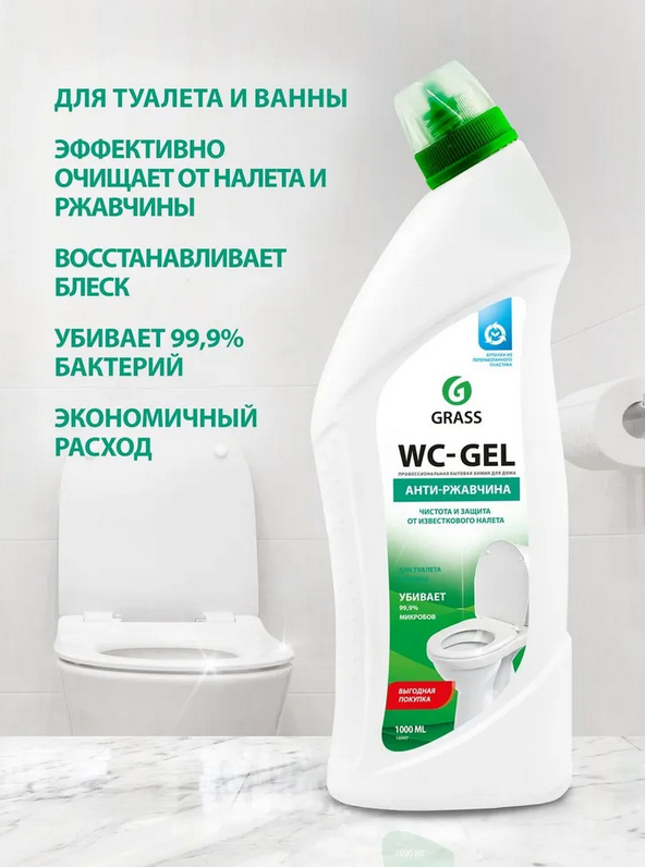 Способствует устранению неприятного запаха, убивает микробы. Гелеобразная структура чистящего средства обеспечивает его экономичный расход.