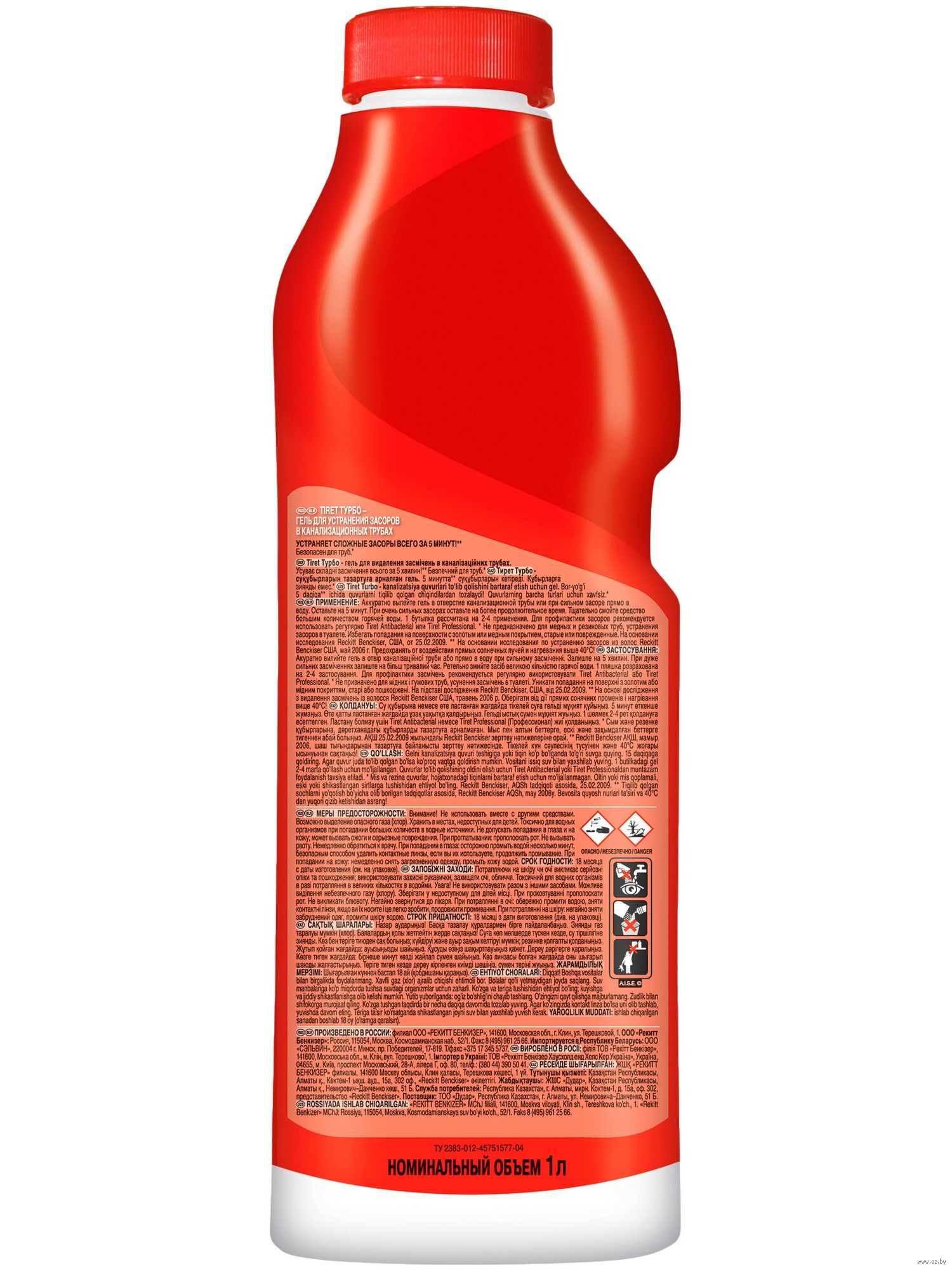 Возник засор? Попробуйте линейку от эксперта No1 в удалении засоров Tiret Turbo. Продукт эффективно и быстро справляется даже со сложными засорами, начиная действовать от 2 минут.