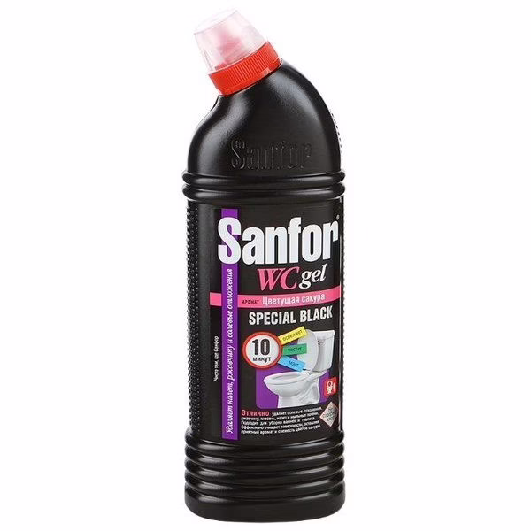 Sanfor "Special Black" прекрасно справляется со сложными загрязнениями в ванной комнате и туалете. Подходит для уборки и дезинфекции туалетов для животных.