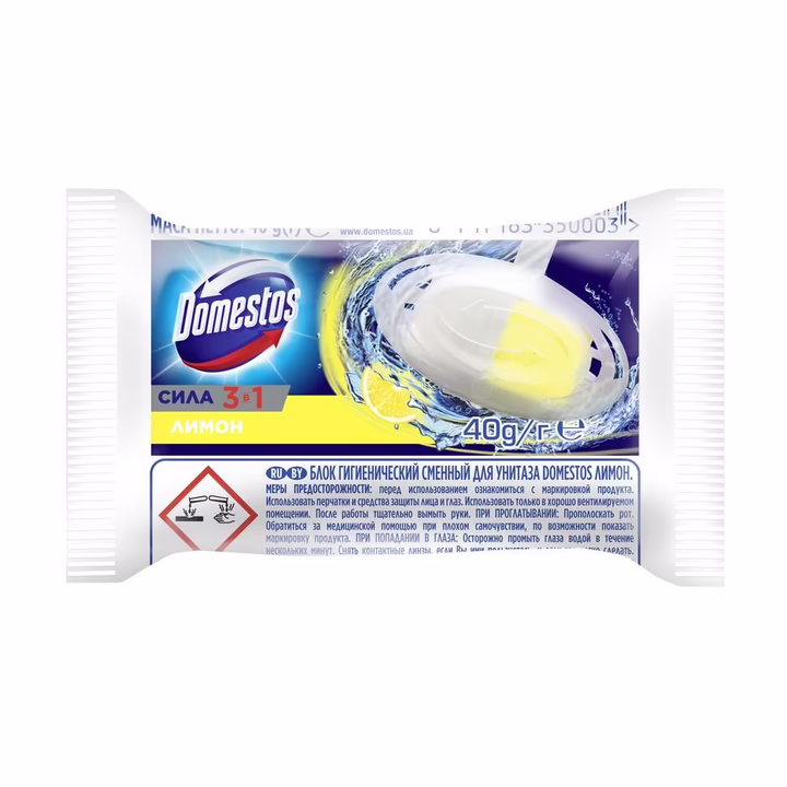 менный гигиенический блок для очищения унитаза Domestos 3в1 Лимон- это эффективное средство для поддержания чистоты, блеска и приятного лимонного аромата. Доместос 3в1 Антиналет для очищения унитаза обладает тройным действием: сменный блок борется с появлением налета, помогает устранять неприятные запахи и обеспечить гигиену туалета до 300 смываний.