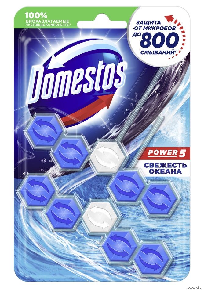 Блок для туалета Domestos Power 5 Антиналет Свежесть океана против известкового налета и неприятного запаха – это пять преимуществ, помогающих обеспечить защиту от загрязнений и микробов и сохранить чистоту и блеск. При каждом смывании появляется свежий аромат океана на срок до 4 часов и обильная пена, которая борется с налетом, поддерживая гигиену и блеск поверхности унитаза.